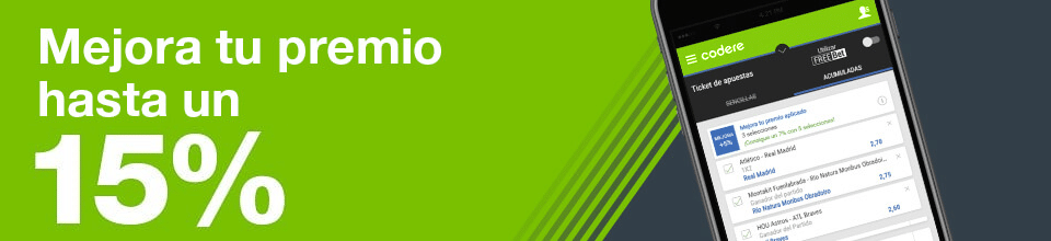 Mejora tu premio: Lo que podremos es obtener hasta un 15% extra en ganancias sobre las apuestas deportivas que hagamos con dinero real, todo lo que tenemos que hacer es acumular combinaciones y entre más arriesgados seamos, mayor será la bonificación a la que podemos aspirar. El mínimo que podemos acreditar es del 3% con 3 selecciones y el máximo del 15% con 10 selecciones o más. Es importante que sepas que ni loterías, ITF-Tenis, galgos o caballos están incluidos dentro de esa promoción.